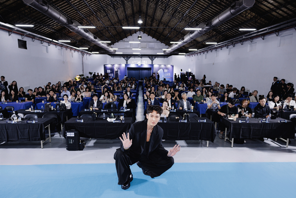 身著俐落黑西裝的柯震東登場瞬間,抓住全場目光焦點。他以自然、自信的姿態現身舞台,與主持人幽默互動,笑稱「帥氣十分」,現場氣氛熱烈